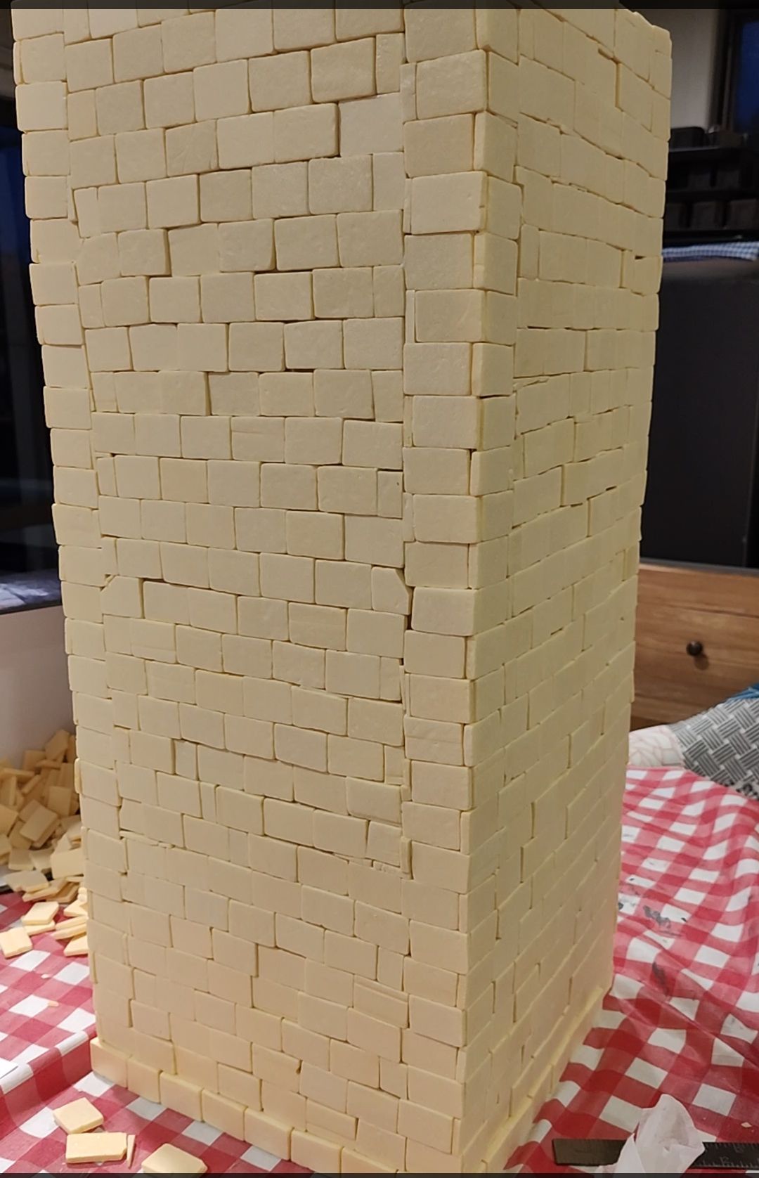 After procrastinating for many months I finally started the week of the wedding (thank you ADHD) and with 4 evenings after work got to constructing a simple castle tower. I took as many short cuts as possible and took a look at Lochie from ZorpaZorp’s video ‘Ultimate Stone Painting Guide’ and the happy couple chose Dungeon Grime as their paint scheme of choice. All of this is perfect as any decision takes me so long to make that I work quickest when, in effect, making a commission piece. It mostly went ok and I think would have been better if I had started earlier but then I knew that during the “Time of Procrastination”.