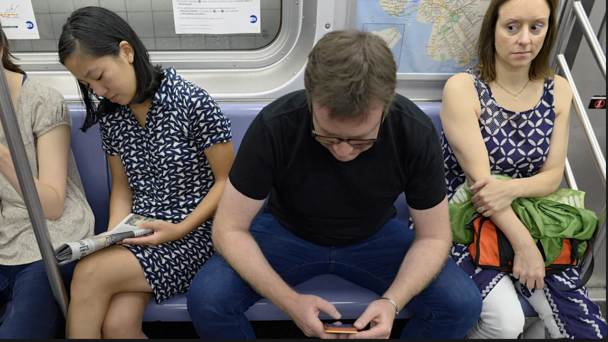 I am cross, in fact I am livid. I paid as much for my ticket as he did and he showed no respect for me or my right to have my own entire seat for myself. I ask you women who are reading this, is this an isolated seat incident? I know all of you will, on a regular basis, have this happen. Regularly we experience being inched, pushed from our seat or the inevitable manspreading on the tube, bus or on a plane, in fact manspreading anywhere. Even to the point where we have given it a cute name ‘manspreading’, to make it less disrespectful and less ‘his fault’. If you need to work out whether men need to manspread, look at a man sitting next to another man he doesn’t know, definitely no manspreading there.